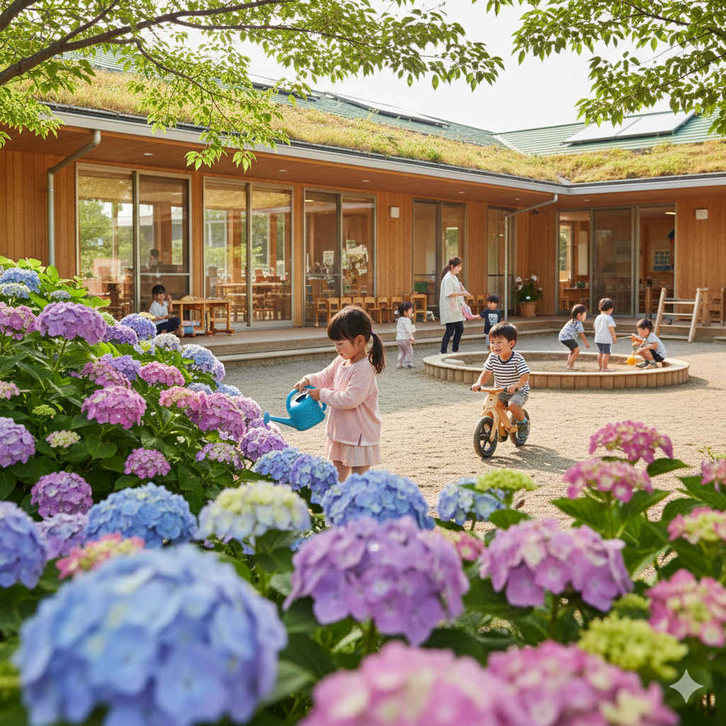 あじさい園は、ただ「教える」だけの場所ではありません。 子どもたちが自ら「見て、触れて、感じて、考えて、行動する」。 このサイクルを、大人が用意した正解ではなく、子どもたち自身の力で作り出してほしいのです。